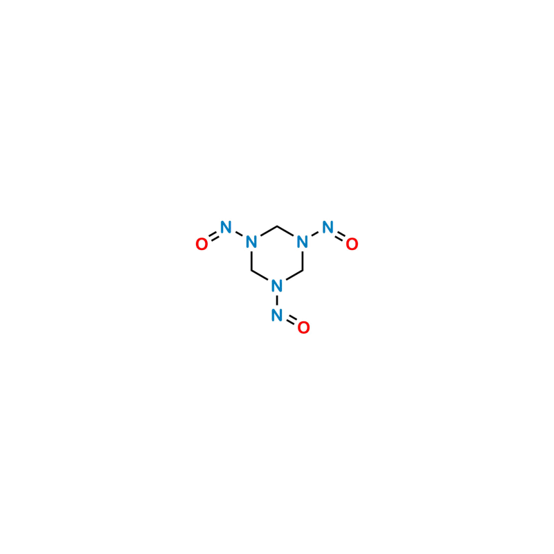 Hexahydro-1,3,5-trinitroso-1,3,5-triazine is chemically 1,3,5-Trinitroso-1,3,5-triazinane. Hexahydro-1,3,5-trinitroso-1,3,5-triazine is supplied with detailed characterization data compliant with regulatory guideline. Hexahydro-1,3,5-trinitroso-1,3,5-triazine can be used for the analytical method development, method validation (AMV), Quality Controlled (QC) application for Abbreviated New Drug Application (ANDA) or during commercial production of Nitrosamines.