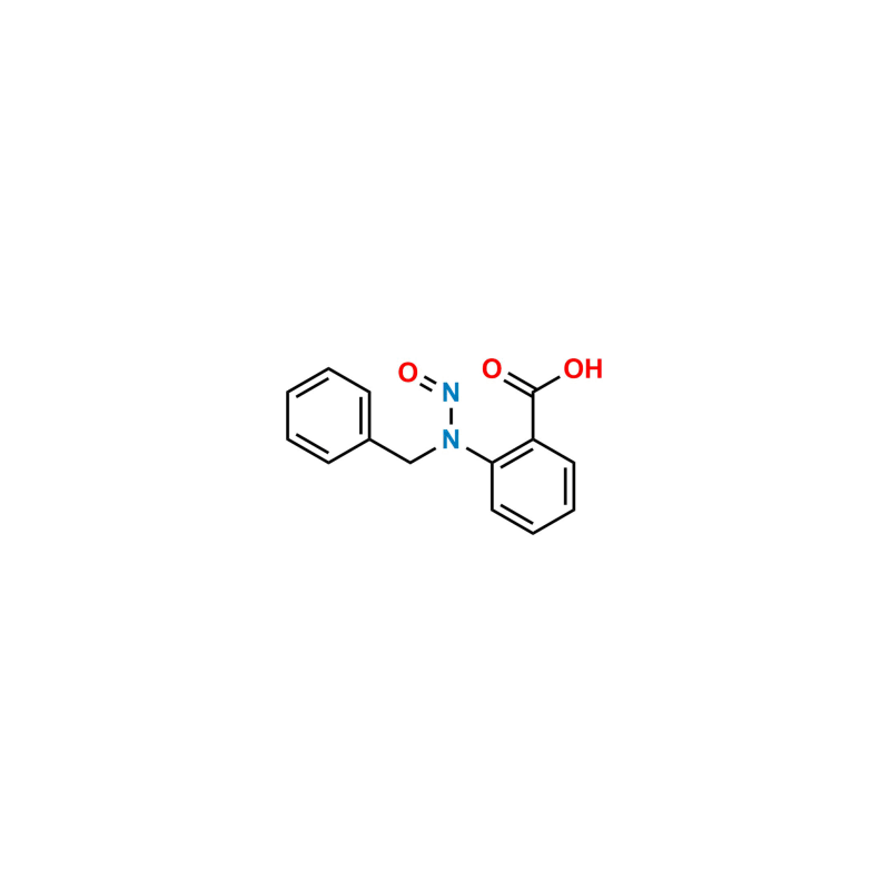 N-Nitroso-N-Benzyl Anthranilic Acid is chemically 2-[nitroso(phenylmethyl)amino]benzoic acid. N-Nitroso-N-Benzyl Anthranilic Acid is supplied with detailed characterization data compliant with regulatory guideline. N-Nitroso-N-Benzyl Anthranilic Acid can be used for the analytical method development, method validation (AMV), Quality Controlled (QC) application for Abbreviated New Drug Application (ANDA) or during commercial production of Nitrosamines.