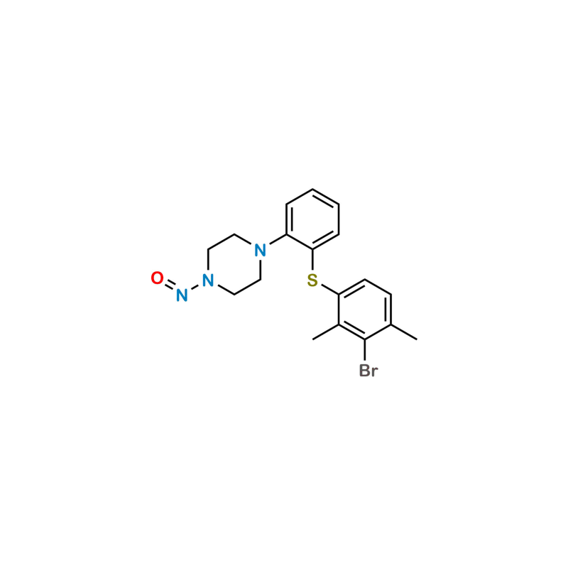 N-Nitroso Vortioxetine Bromo Impurity is chemically 1-(2-((3-Bromo-2,4-dimethylphenyl)thio)phenyl)-4-nitrosopiperazine. N-Nitroso Vortioxetine Bromo Impurity is supplied with detailed characterization data compliant with regulatory guideline. N-Nitroso Vortioxetine Bromo Impurity can be used for the analytical method development, method validation (AMV), Quality Controlled (QC) application for Abbreviated New Drug Application (ANDA) or during commercial production of Vortioxetine.