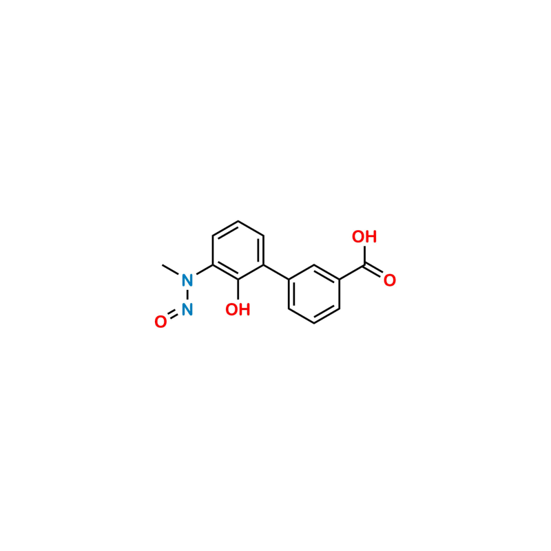Nitrosamines Impurity 82 is chemically 2'-Hydroxy-3'-(methyl(nitroso)amino)-[1,1'-biphenyl]-3-carboxylic acid. Nitrosamines Impurity 82 is supplied with detailed characterization data compliant with regulatory guideline. Nitrosamines Impurity 82 can be used for the analytical method development, method validation (AMV), Quality Controlled (QC) application for Abbreviated New Drug Application (ANDA) or during commercial production of Nitrosamines.