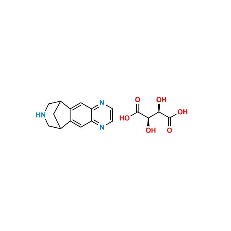 Varenicline Tartrate is chemically 7,8,9,10-Tetrahydro-6H-6,10-methanoazepino[4,5-g]quinoxaline (2R,3R)-2,3-dihydroxysuccinate. Varenicline Tartrate is supplied with detailed characterization data compliant with regulatory guideline. Varenicline Tartrate can be used for the analytical method development, method validation (AMV), Quality Controlled (QC) application for Abbreviated New Drug Application (ANDA) or during commercial production of Varenicline.