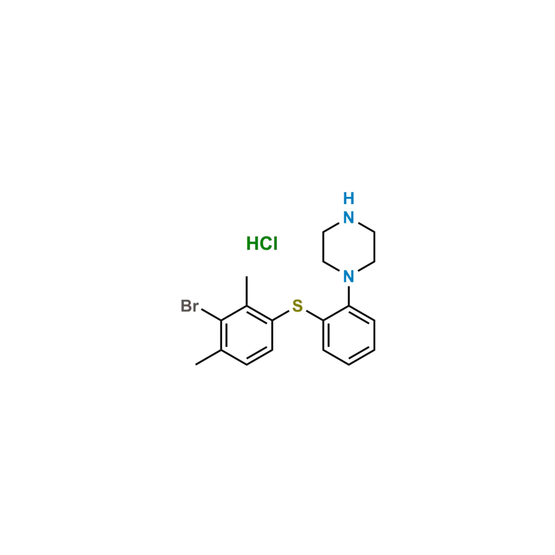 Vortioxetine Bromo Impurity (HCl salt) is chemically 1-(2-((3-Bromo-2,4-dimethylphenyl)thio)phenyl)piperazine hydrochloride. Vortioxetine Bromo Impurity (HCl salt) is supplied with detailed characterization data compliant with regulatory guideline. Vortioxetine Bromo Impurity (HCl salt) can be used for the analytical method development, method validation (AMV), Quality Controlled (QC) application for Abbreviated New Drug Application (ANDA) or during commercial production of Vortioxetine.