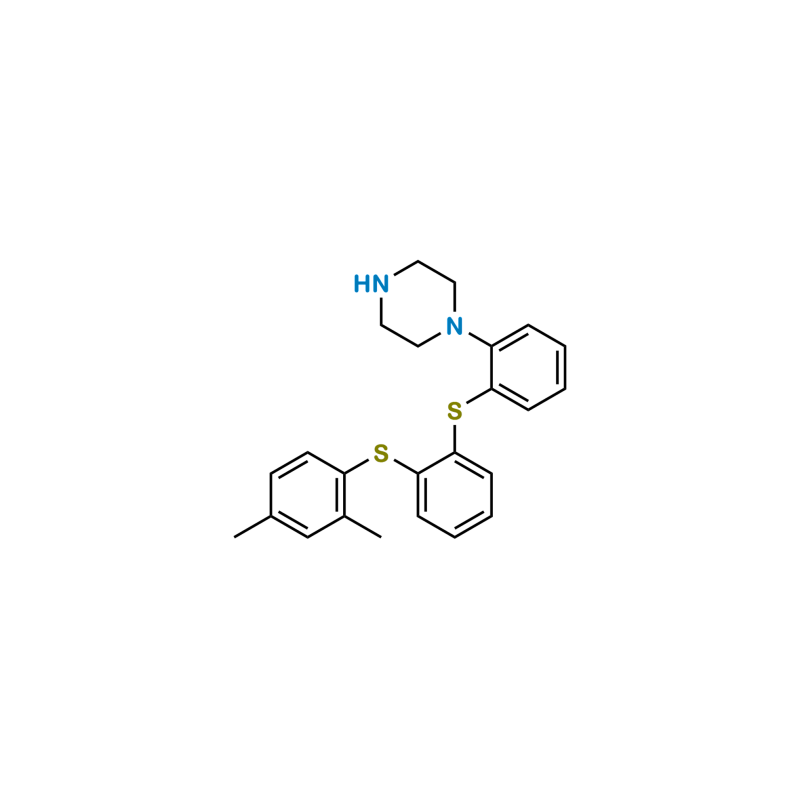 Vortioxetine Impurity 23 is chemically 1-(2-((2-((2,4-Dimethylphenyl)thio)phenyl)thio)phenyl)piperazine. Vortioxetine Impurity 23 is supplied with detailed characterization data compliant with regulatory guideline. Vortioxetine Impurity 23 can be used for the analytical method development, method validation (AMV), Quality Controlled (QC) application for Abbreviated New Drug Application (ANDA) or during commercial production of Vortioxetine.