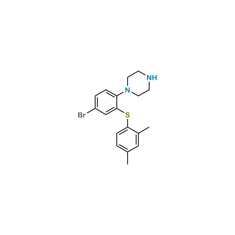 Vortioxetine Impurity 53 is chemically 1-(4-Bromo-2-((2,4-dimethylphenyl)thio)phenyl)piperazine. Vortioxetine Impurity 53 is supplied with detailed characterization data compliant with regulatory guideline. Vortioxetine Impurity 53 can be used for the analytical method development, method validation (AMV), Quality Controlled (QC) application for Abbreviated New Drug Application (ANDA) or during commercial production of Vortioxetine.
