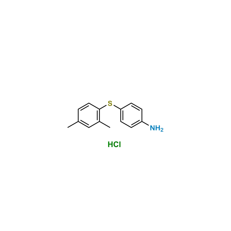 Vortioxetine Impurity 57 is chemically 4-((2,4-Dimethylphenyl)thio)aniline hydrochloride. Vortioxetine Impurity 57 is supplied with detailed characterization data compliant with regulatory guideline. Vortioxetine Impurity 57 can be used for the analytical method development, method validation (AMV), Quality Controlled (QC) application for Abbreviated New Drug Application (ANDA) or during commercial production of Vortioxetine.