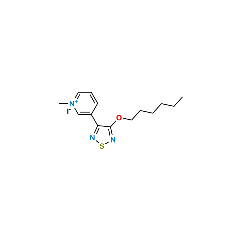 Xanomeline Impurity 4 is chemically 3-(4-(hexyloxy)-1,2,5-thiadiazol-3-yl)-1-methylpyridin-1-ium iodide. Xanomeline Impurity 4 is supplied with detailed characterization data compliant with regulatory guideline. Xanomeline Impurity 4 can be used for the analytical method development, method validation (AMV), Quality Controlled (QC) application for Abbreviated New Drug Application (ANDA) or during commercial production of Xanomeline.
