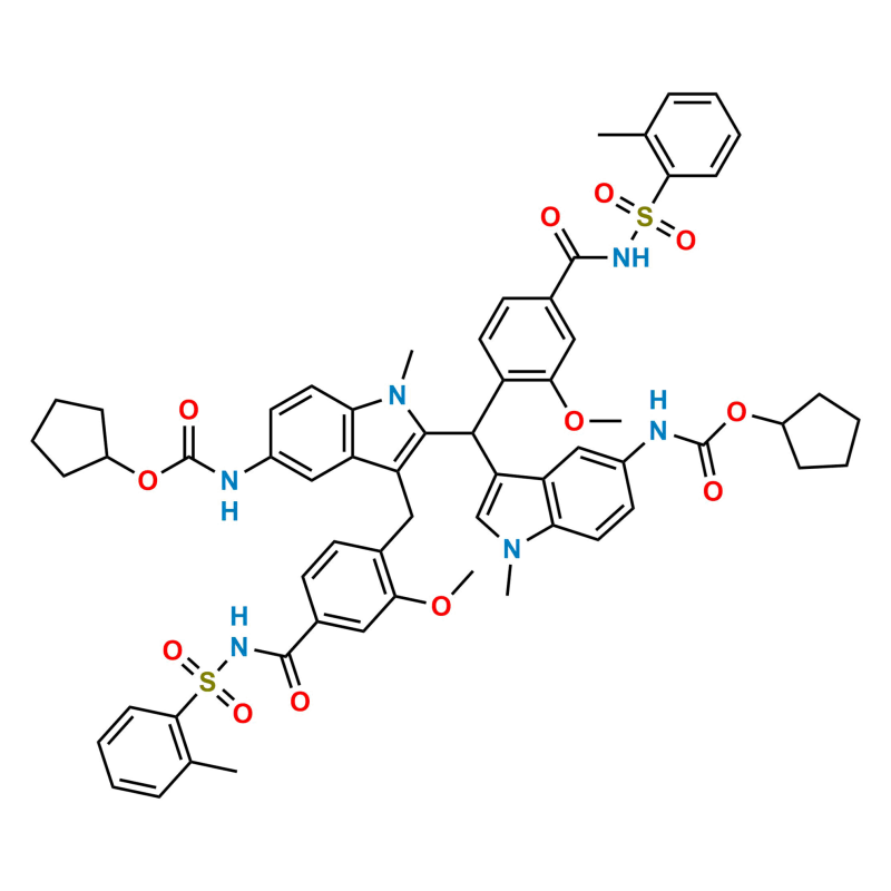 Chemical Name: Cyclopentyl (2-((5-(((cyclopentyloxy)carbonyl)amino)-1-methyl-1H-indol-3-yl)(2-methoxy-4-((o-tolylsulfonyl)carbamoyl)phenyl)methyl)-3-(2-methoxy-4-((o-tolylsulfonyl)carbamoyl)benzyl)-1-methyl-1H-indol-5-yl)carbamate