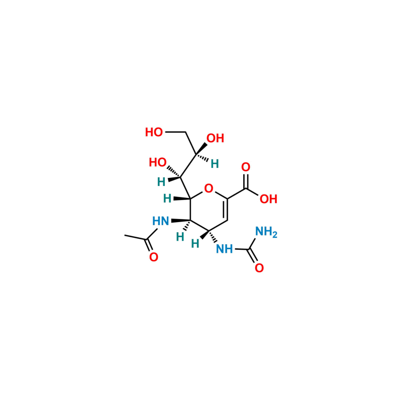 Zanamivir EP Impurity D is chemically (2R,3R,4S)-3-Acetamido-4-(carbamoylamino)-2-[(1R,2R)-1,2,3-trihydroxypropyl]-3,4-dihydro-2H-pyran-6-carboxylic acid (as per EP). Zanamivir EP Impurity D is supplied with detailed characterization data compliant with regulatory guideline. Zanamivir EP Impurity D can be used for the analytical method development, method validation (AMV), Quality Controlled (QC) application for Abbreviated New Drug Application (ANDA) or during commercial production of Zanamivir.