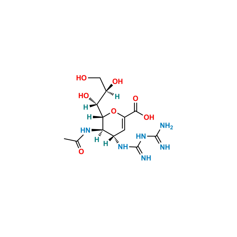 Chemical Name: (2R,3R,4S)-3-Acetamido-4-(N′-carbamimidoylcarbamimidamido)-2-[(1R,2R)-1,2,3-trihydroxypropyl]-3,4-dihydro-2H-pyran-6-carboxylic acid (as per EP)