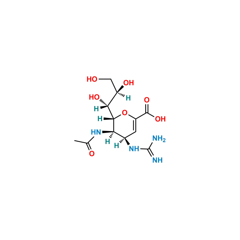 Chemical Name: (2R,3R,4R)-3-Acetamido-4-carbamimidamido-2-[(1R,2R)-1,2,3-trihydroxypropyl]-3,4-dihydro-2H-pyran-6-carboxylic acid (as per EP)